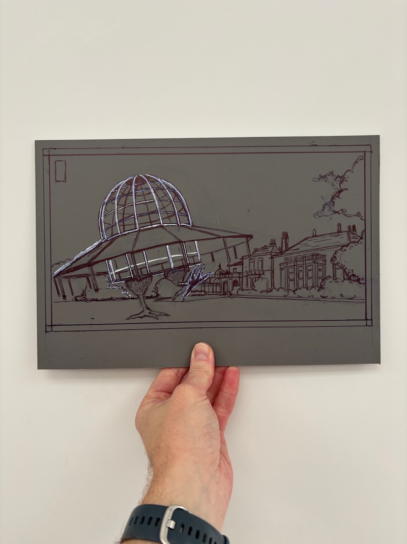 I have fun with most of my prints, but one that stands out as particularly enjoyable was a wedding gift I created. It featured the groom being dragged along by the bride, with the wedding venue in the background and a giant cat looming over it. It might sound like an odd choice for a wedding gift, but it suited the couple perfectly and captured their energy, relationship, and sense of fun. I had a sense of what they’d enjoy from a previous commission the bride had requested for her then-fiancé - a wonderfully bonkers piece. The wedding print was as well received as I’d hoped, which made the whole experience even more rewarding.