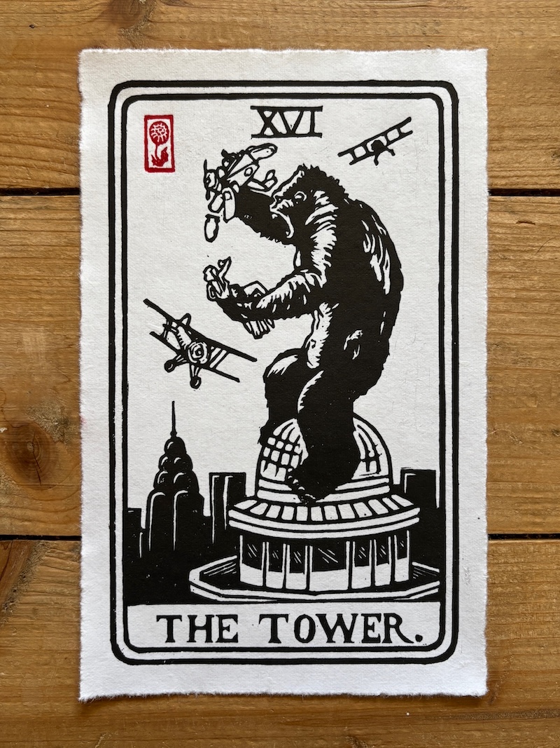 Music, film and pop culture also appear regularly, though those prints tend to be more varied and don’t share the same “DNA” as the others. Although I have started a series of movie themed tarot cards that I add to as inspiration strikes.