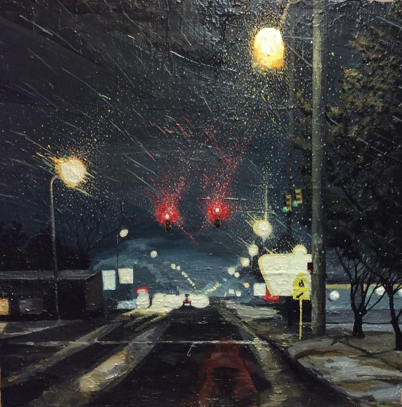I really spent tons and tons of time at the Detroit Institute of Arts studying landscapes in person and trying to figure out what stood out and gave it a feeling. The Detroit Institute of Arts is one of the top museums in the nation. And it’s Detroit. So it’s different, I can sit in a room with a Van Gogh painting for an hour, where everywhere else in the world, there’s 50 people crowded into that room fighting to see it. It really helped me figure out where I wanted to go with my work. Also, Detroit was just like that: Empty. I try and erase most of the cars. That way it feels a little more intimate and safe.