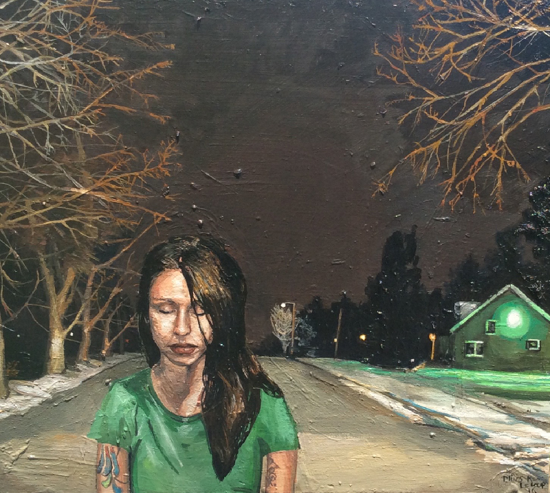 It really depends on the painting. I think when I’m painting a person or a portrait, I’m trying to bring a piece of humanity out. Some type of representation of them. Landscapes are different. The best way to describe what I’m looking for is an example. When I did my residency at Red Bull, a woman came up to me crying and said “You actually show the city the way it feels, the way we see it.” With landscapes, I want you to feel like you feel when you look at a really good portrait. Like there’s a life behind it, not just empty buildings and trees. I know I’m painting with almost a haunted feeling. So maybe I’m trying to pull nostalgia from the viewer. To be frank, I’ve never aimed for a feeling. I just wanted a feeling. Love, hate, sadness, whatever. We’re all so numb now. If I can even get a few seconds of emotion out of the viewer, I’m happy. My two reactions that stick out are the before mentioned one and one where a lady screamed at me and said “My daughter was freaked out about your paintings and couldn’t sleep” both pulled a strong reaction and feeling. So I kinda always thought of both as a good thing.