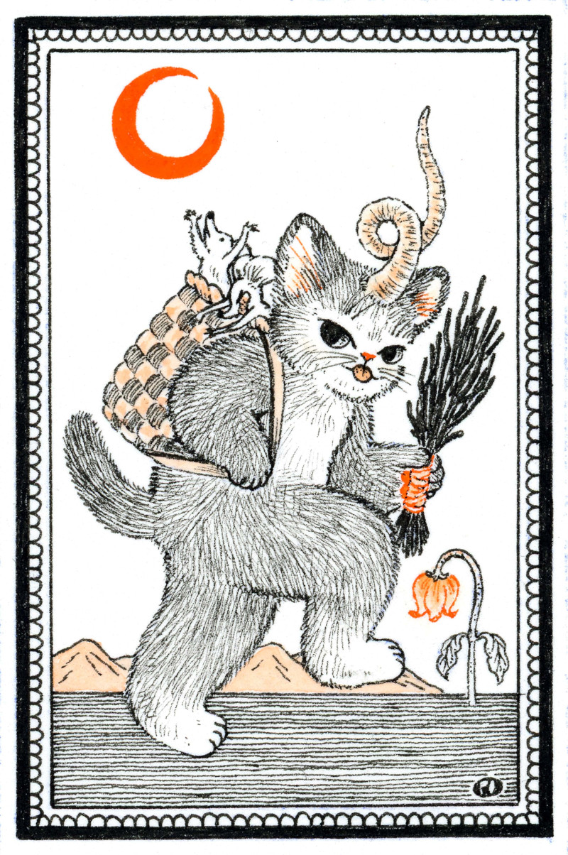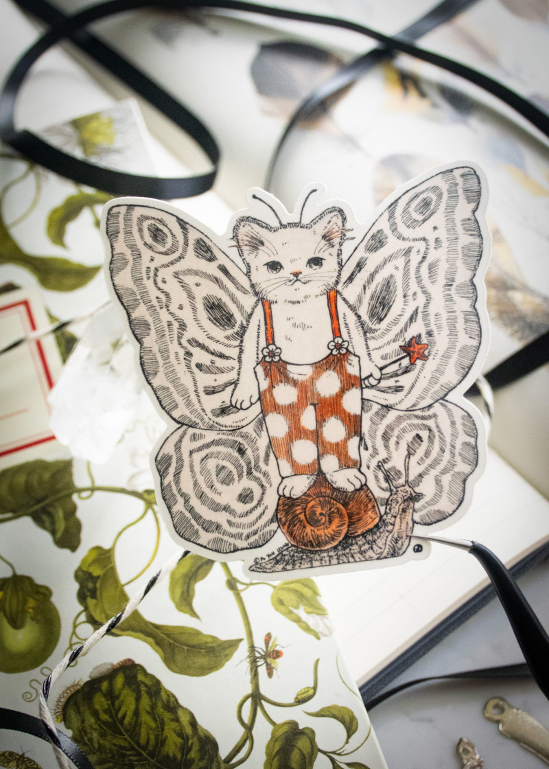 I think I found my style naturally as I grew as an artist. My work has always had a touch of weirdness and humor, and over time, I have allowed myself to embrace that side even more. My art is really a mix of everything I love: vintage looks, magical themes, and, of course, cats.