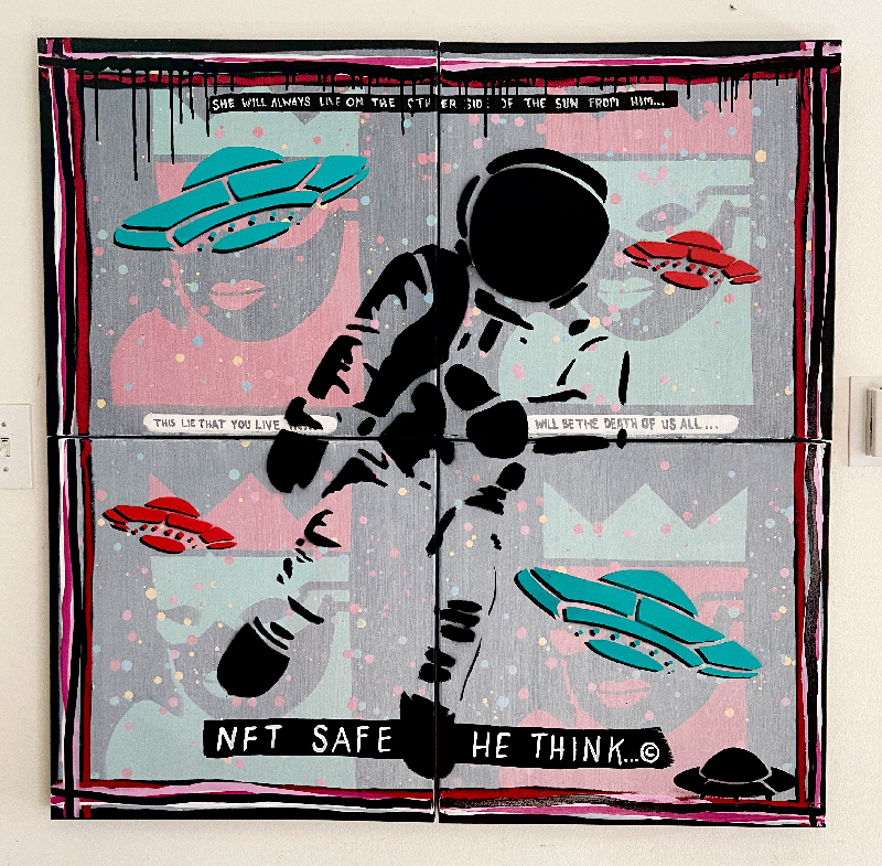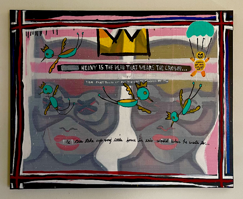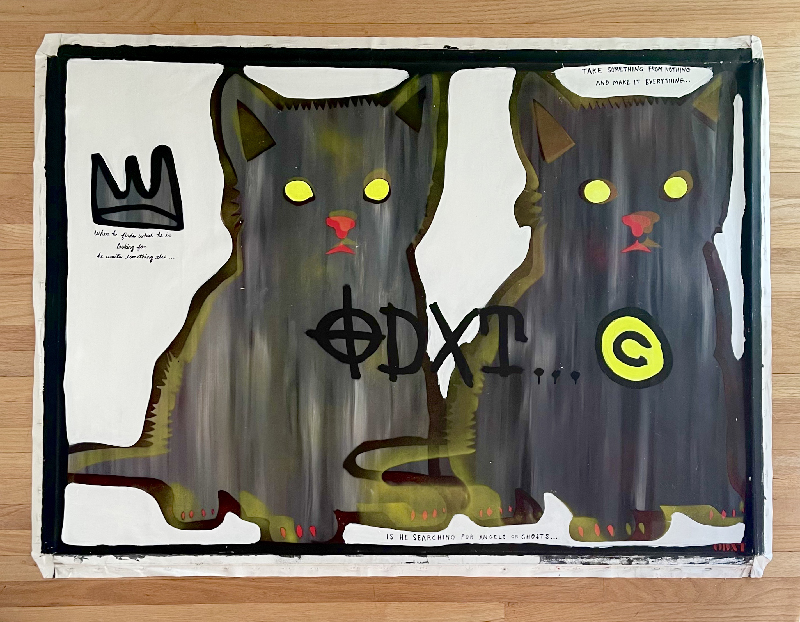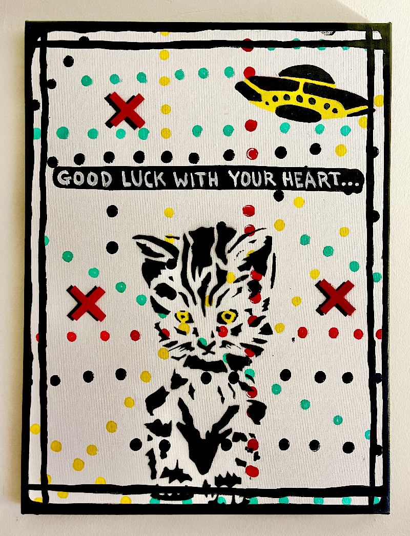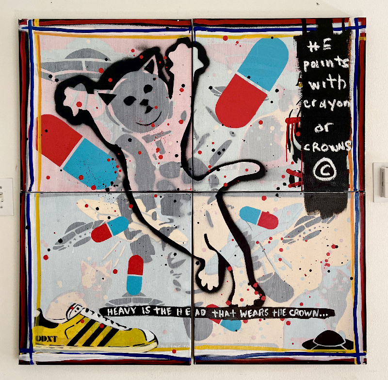 I grew up in Philly surrounded by art in my house. My father’s pencil drawings were everywhere and I was fascinated by them. I met a local artist named Flow whose work I really admired. He was heavily influenced by Warhol and Basquait and as a result I began exploring their work. I was living in a warehouse in Queen Village when I first saw Julian Schnabel’s film “Basquait”. The next day I went out and got some canvas and paint and I haven’t stopped since.