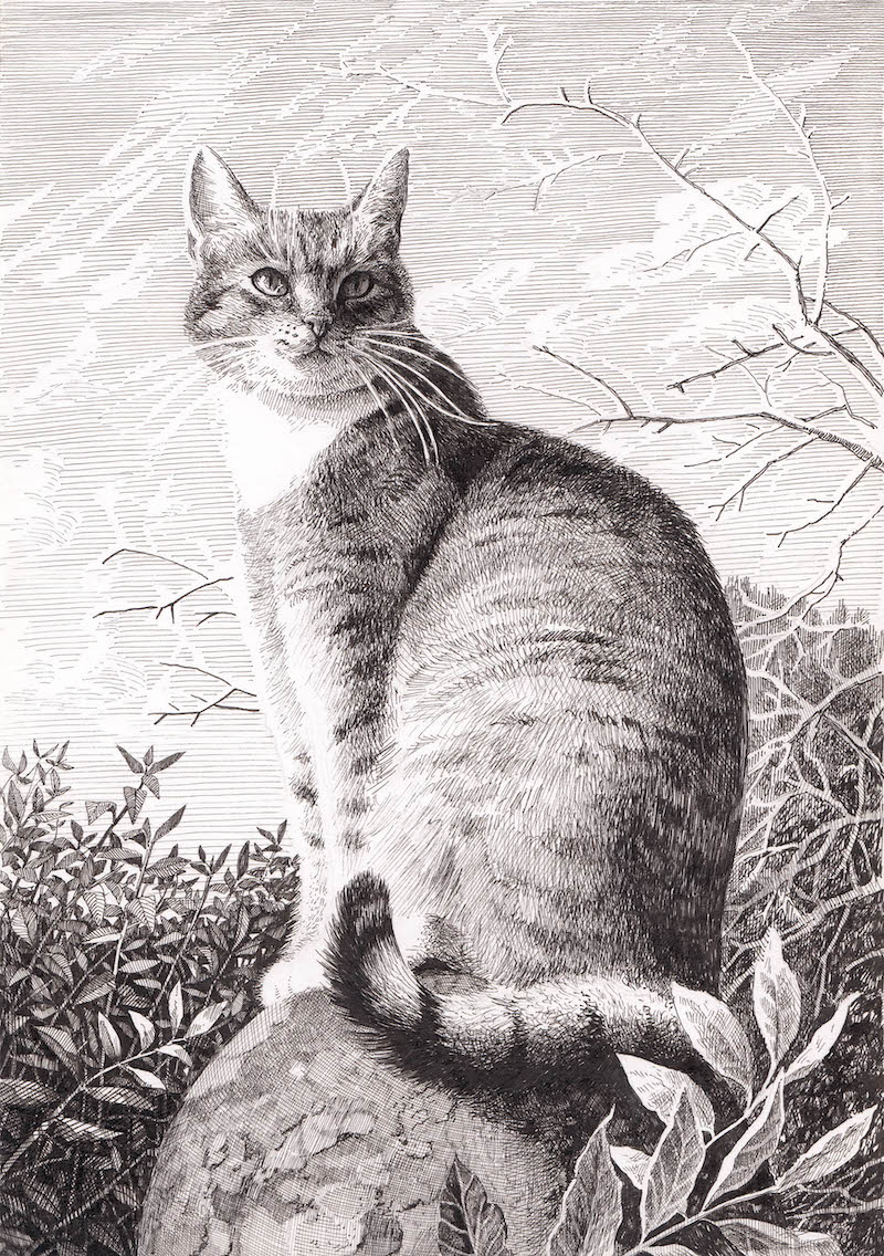 The repetitive stages of a project where not much thinking is involved, like hatching and cross-hatching large areas, are something I look forward to also, because they give me the opportunity to