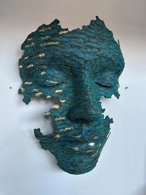 I have been wanting to be a sculptor from the age of 22. At the age of 42, I moved to Cape Town, starting completely over and I got an opportunity to work with my niece as a jeweler. I knew nothing about creating jewelry, I first worked with aluminum creating rustic bracelets. This medium was flexible, and I knew this would be the start of my artist career. I made my actual first aluminum face sculpture only 2 years later.