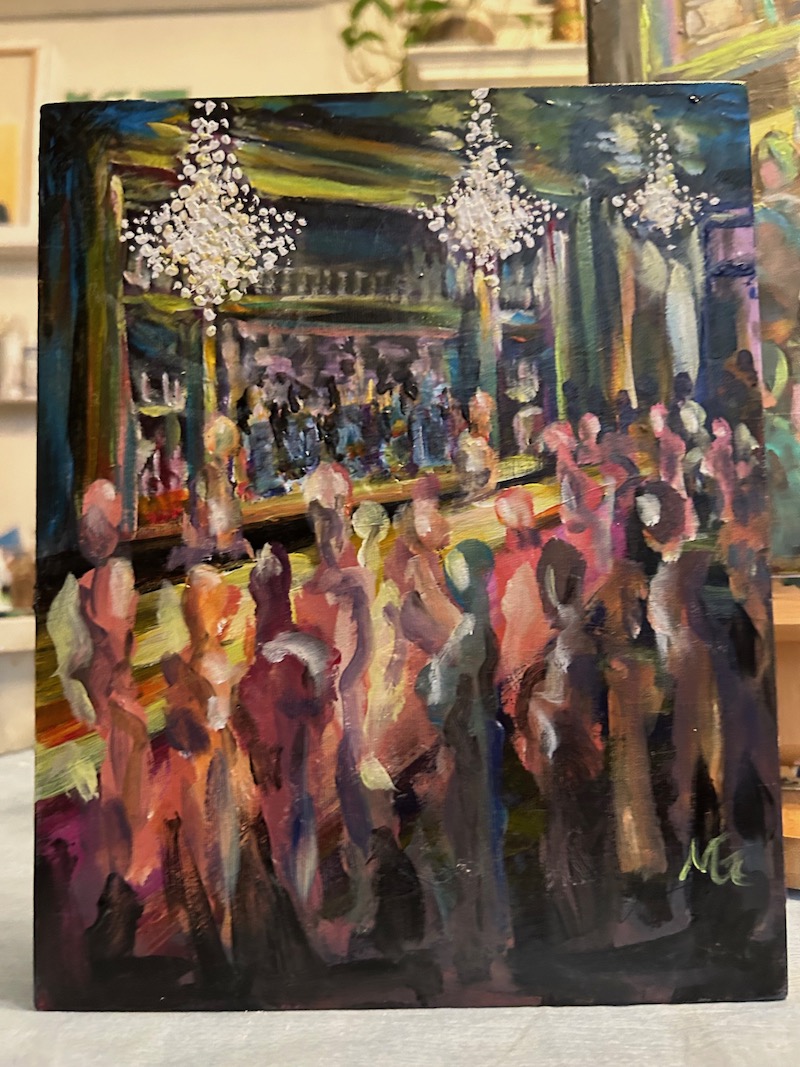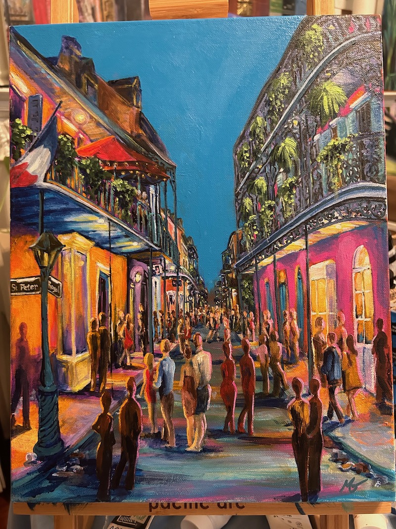 Megan’s art catapults you straight to the hustle and bustle of the electric New Orleans nights. If you look at her work long enough, you feel as if you can see the vibrant imagery come to life. I can hear the people laughing, chatting, and cheering, while local street musicians play those famous jazz band tunes.