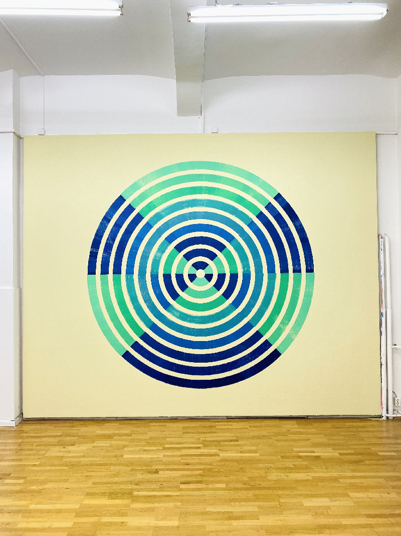 I often describe my work as graphic wall paintings that are created through a fixed system created by the painting tools, the "OTTOTOOLS". I usually create these graphics in color gradations.