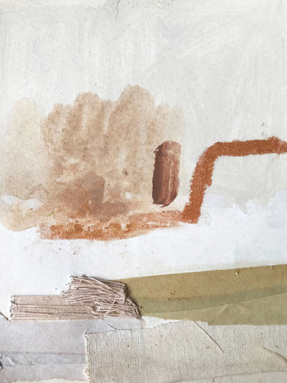 Your layered creations may consist of painting, textiles, drawing, and sculptures. Please explain the process of your work from start to finish.